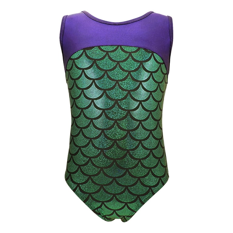 Girls Gymnastics Leotard Tank With Keyhole Purple Green Mermaid Youth 12 14 Walmart Com